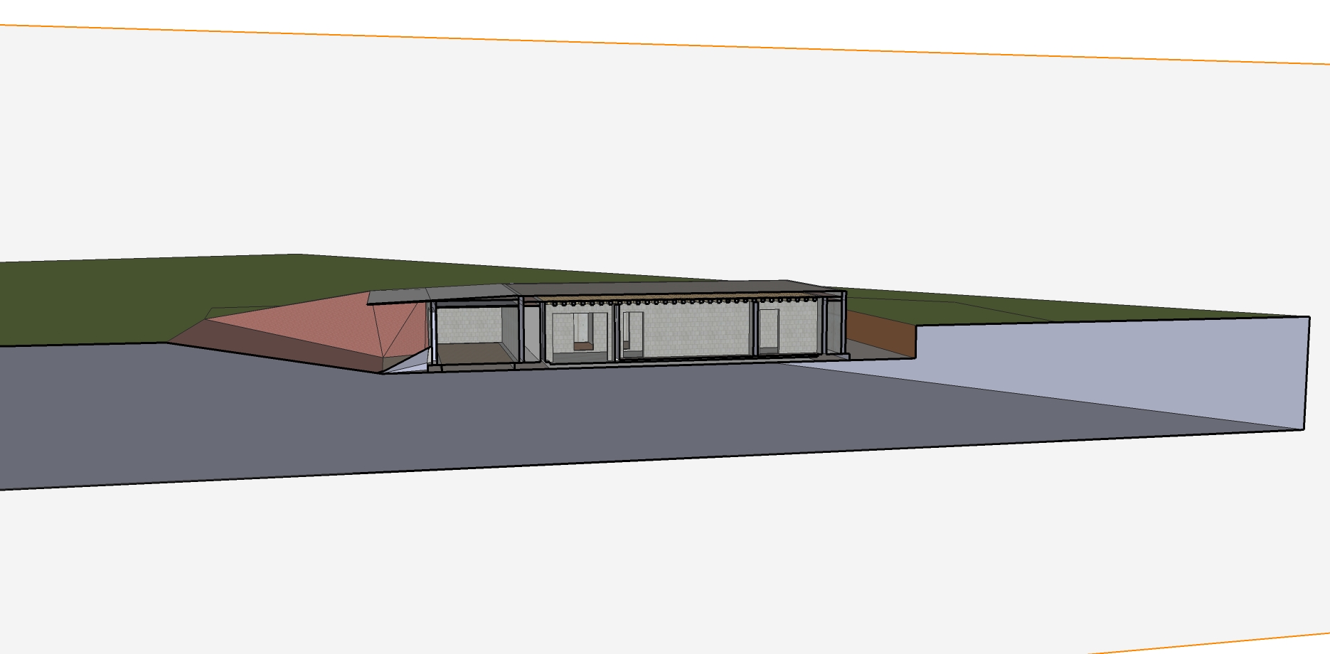 10" concrete ceiling with earthen cover. Exterior entrance; double walled steel curtain. Interior entrance airlock with steel doors. |