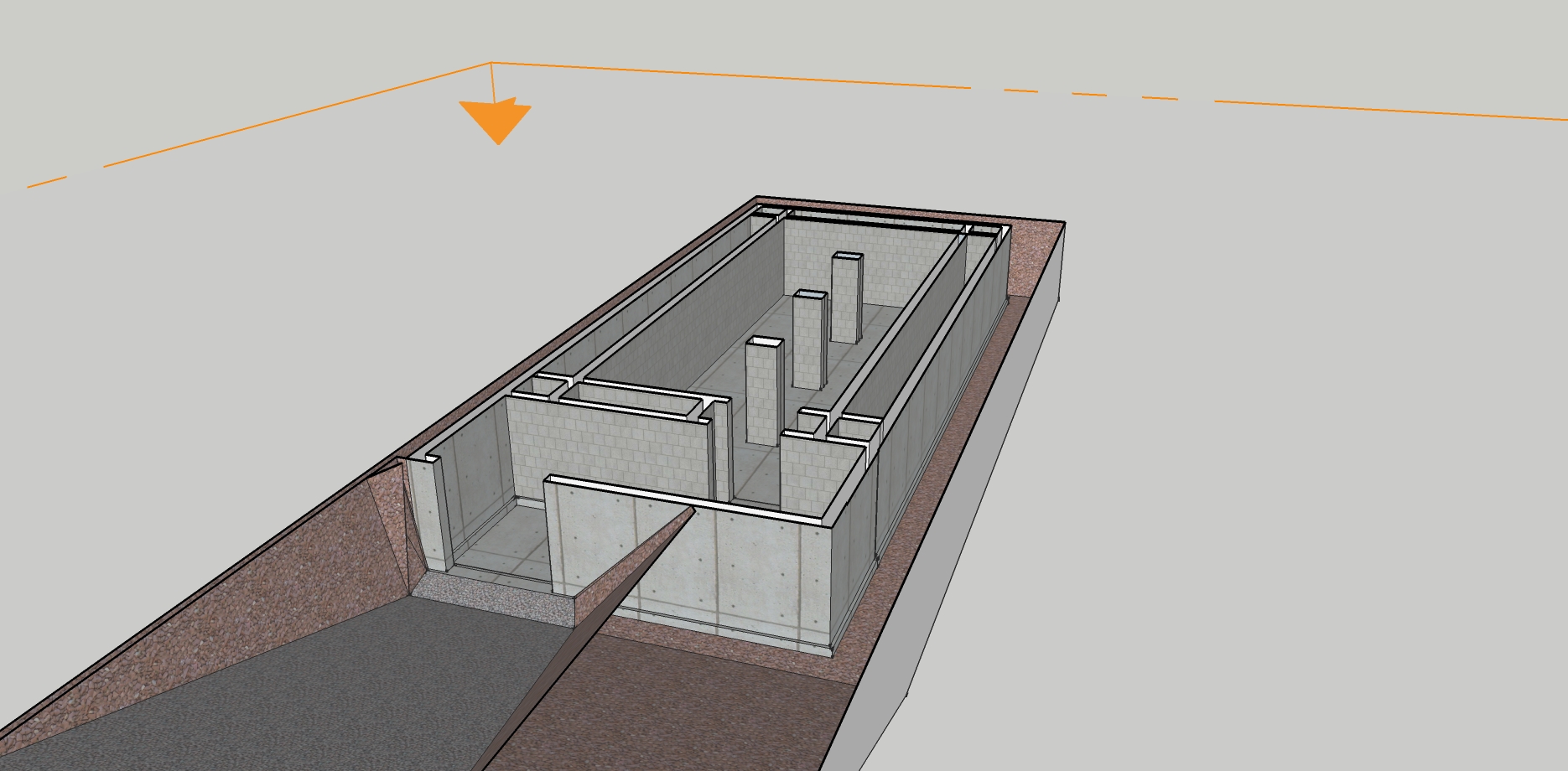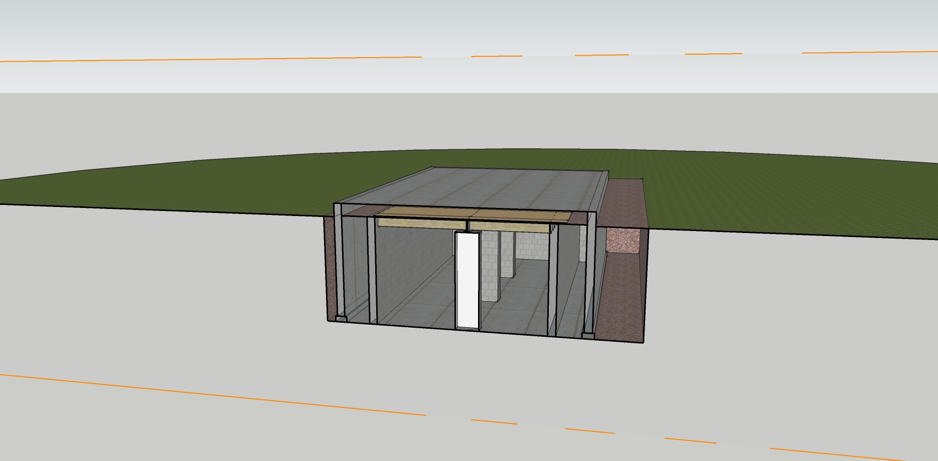 Shelter: 8" exterior concrete wall, 25" packed earth, 8" interior cinderblock wall; |